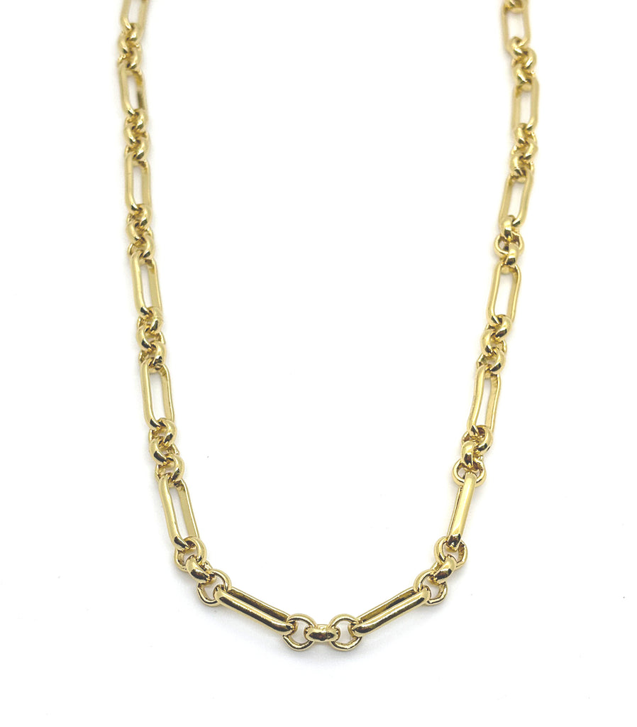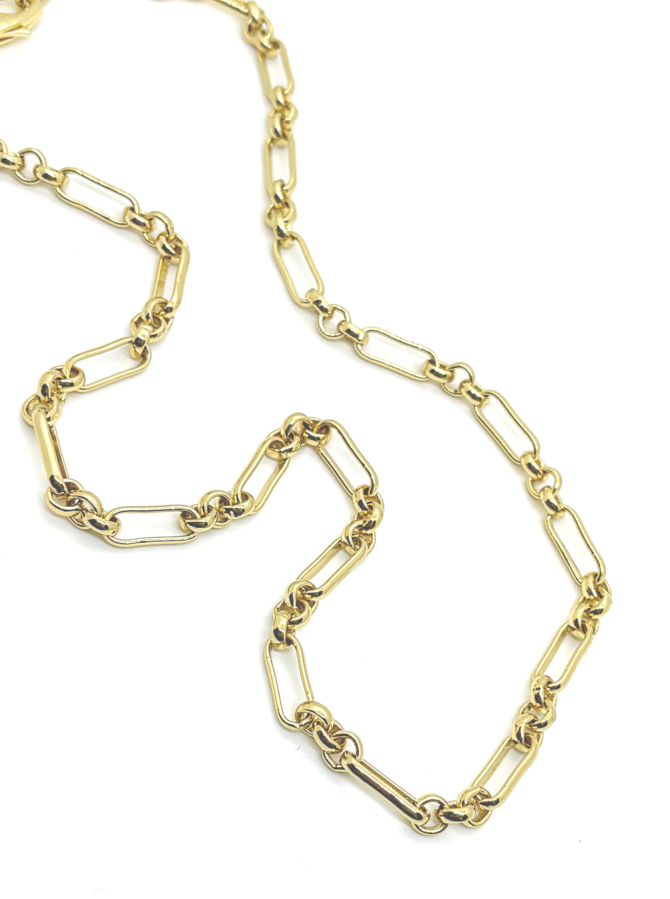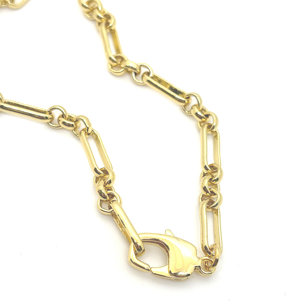 Our new Tradd chain features an antique watch chain link. The varied shapes and sizes create interest while making this your new everyday piece. The oversized lobster claw clasp allows you to add charms seamlessly at the front , or clasp shorter with ease for endless options for wear.