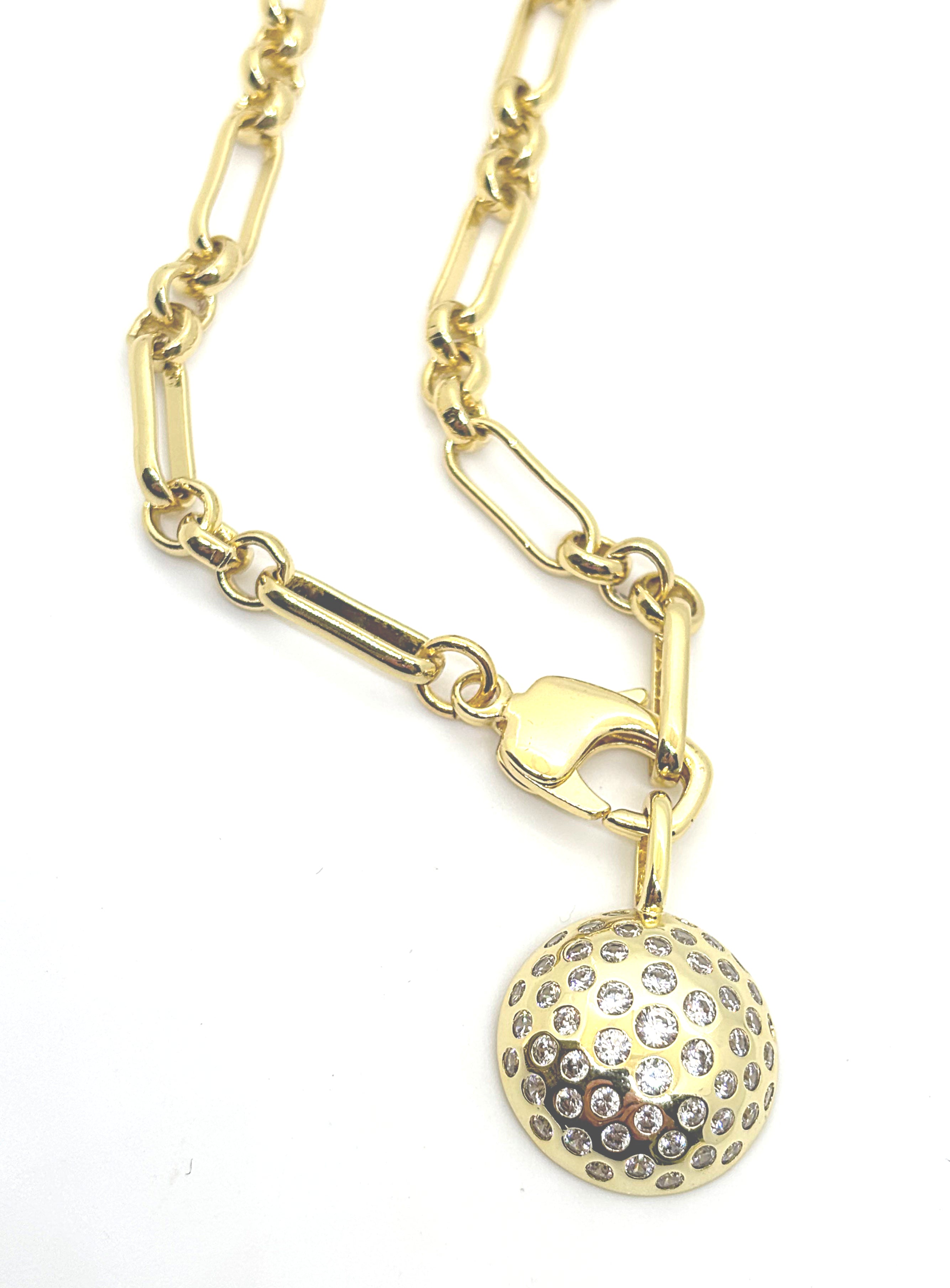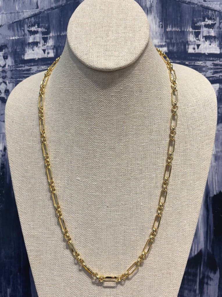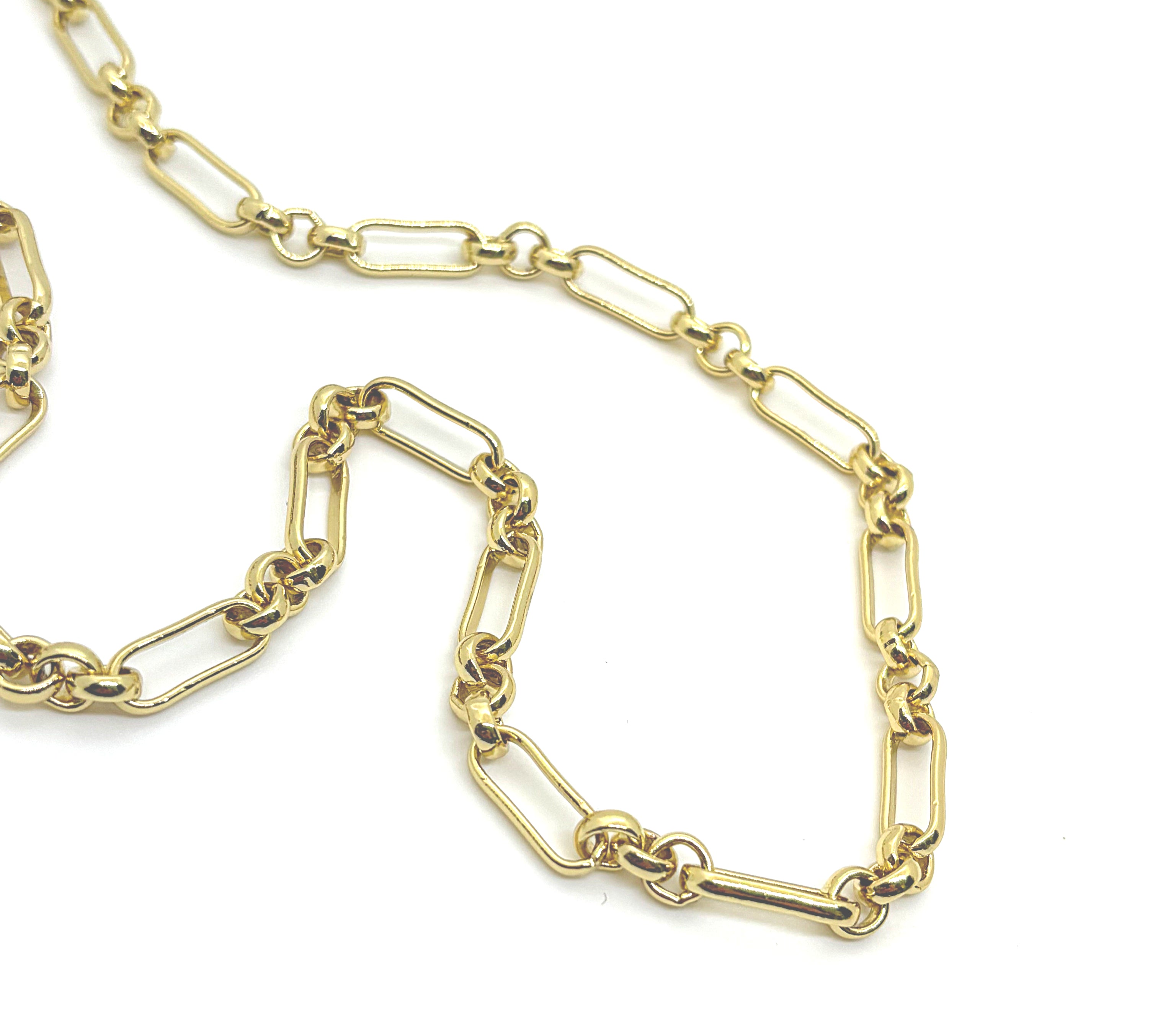 Our new Tradd chain features an antique watch chain link. The varied shapes and sizes create interest while making this your new everyday piece. The oversized lobster claw clasp allows you to add charms seamlessly at the front , or clasp shorter with ease for endless options for wear.