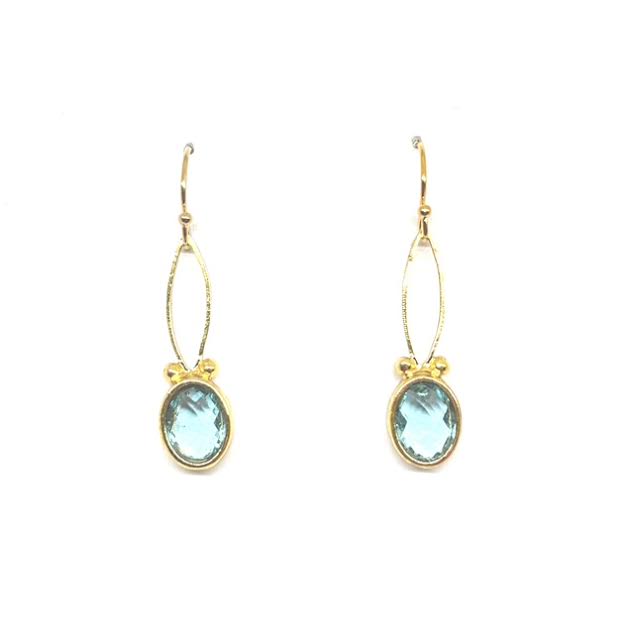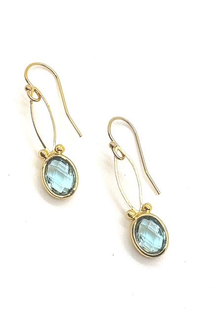 Elevate your elegance with these handmade gold-filled blue topaz dangle earrings. Crafted for simplicity and refined beauty, each earring features a translucent blue topaz that catches the light with a soft, enchanting sparkle. The crystal-clear gemstone is delicately suspended from a smooth gold-filled setting, allowing the natural brilliance of the topaz to take center stage.