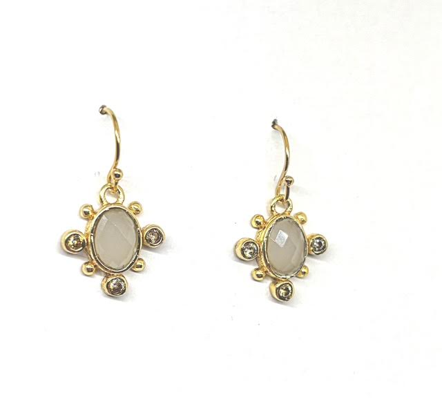 Illuminate your look with the quiet elegance of these handcrafted moonstone and topaz earrings. At the center of each drop rests a luminous, natural moonstone—its soft, ethereal glow capturing light with every movement. Encircling the gemstone is a halo of finely cut white topaz, adding a touch of brilliant sparkle that perfectly complements the moonstone’s dreamy sheen. Set in polished 14k gold, these earrings strike the ideal balance between delicacy and luxury.
