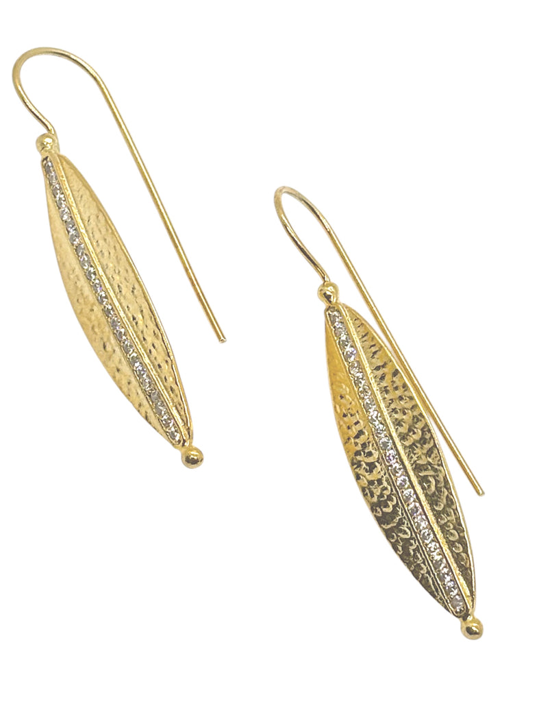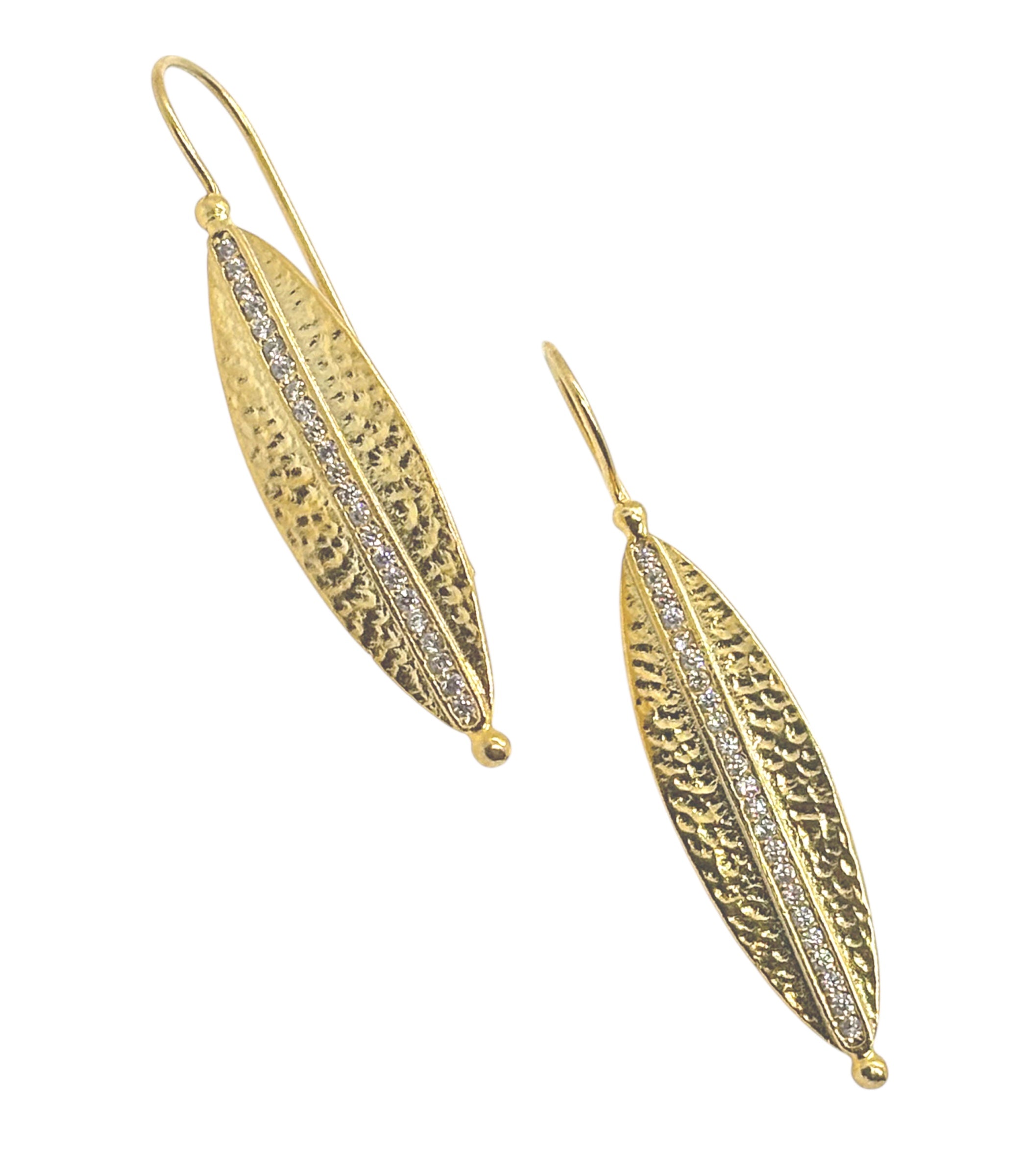 Inspired by nature’s elegance, the Wind earring features a modern hammered silhouette adorned with delicate inlaid White Topaz, creating subtle sparkle with every movement. Its sleek, leaf-like form evokes organic beauty, making a refined statement while remaining effortlessly wearable for everyday sophistication.