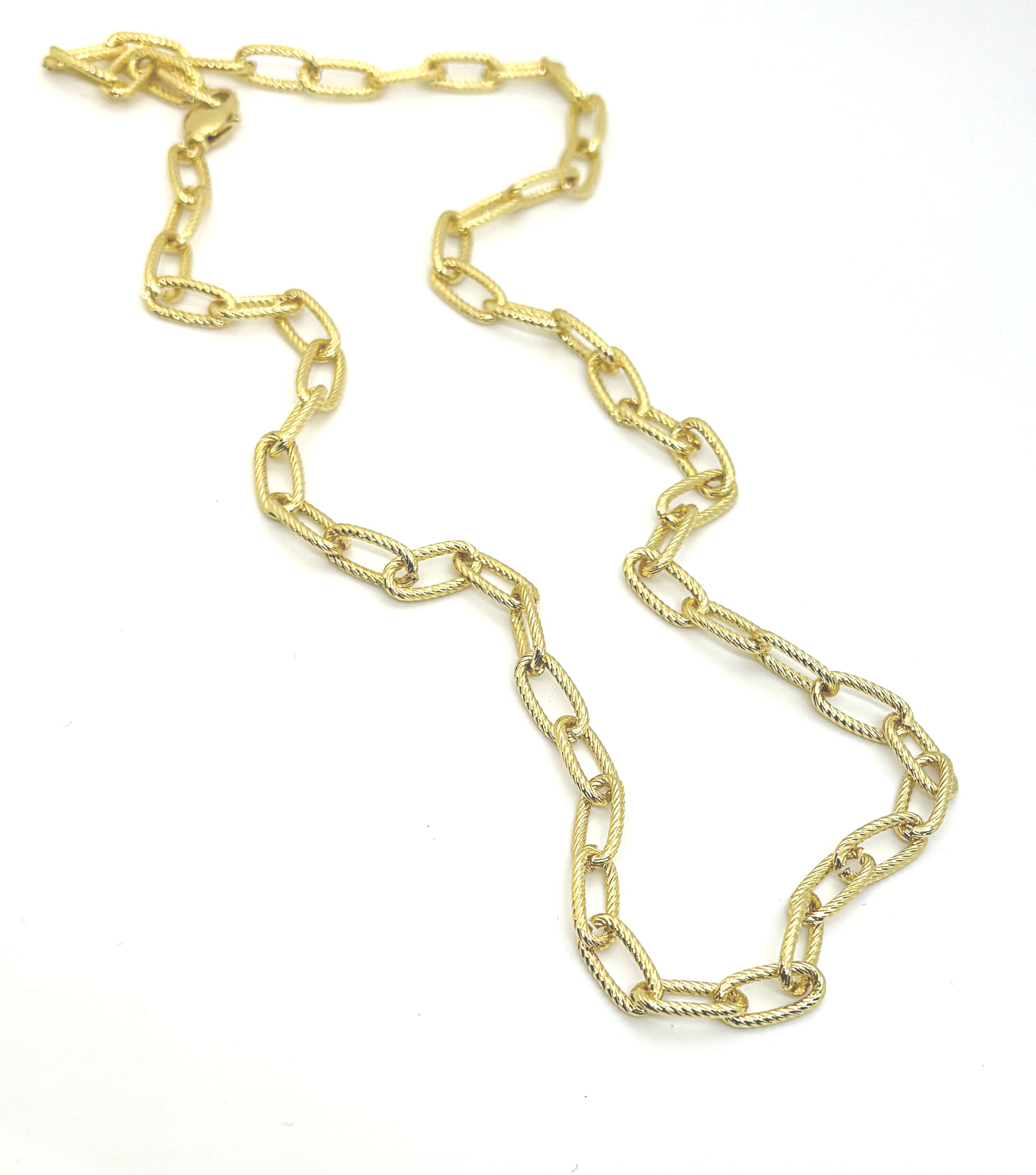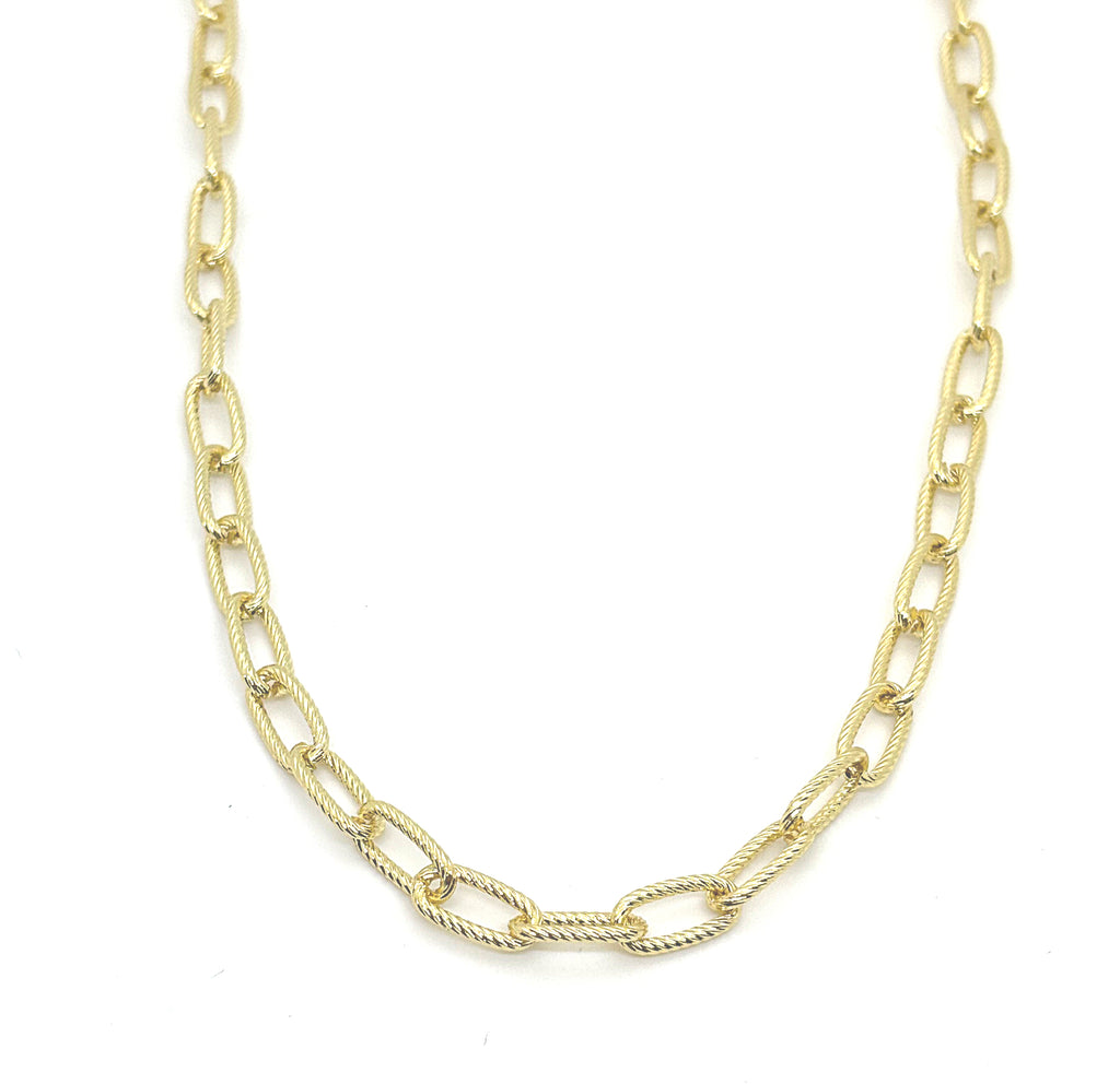 Our best selling Samantha textured link chain makes a subtle statement all by itself! Pair with a strand of pearls or dainty chain for another look. Easily add a charm to switch things up. Custom length's available.