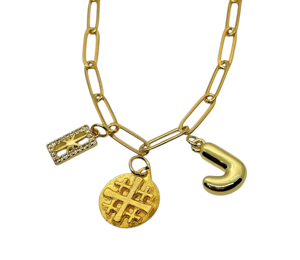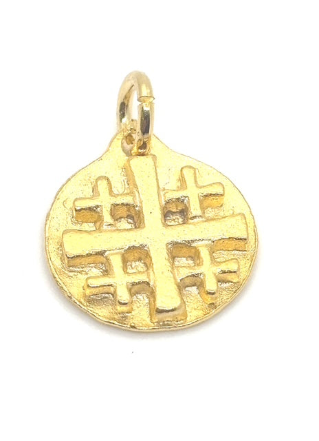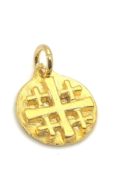 This modern charm features a historic image of the intersection or joy and love.  A matte gold finish adds a feeling of antiquity to this piece.