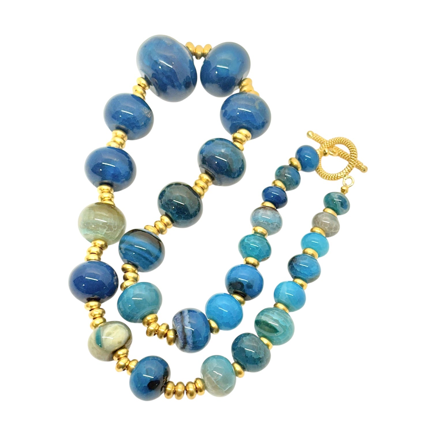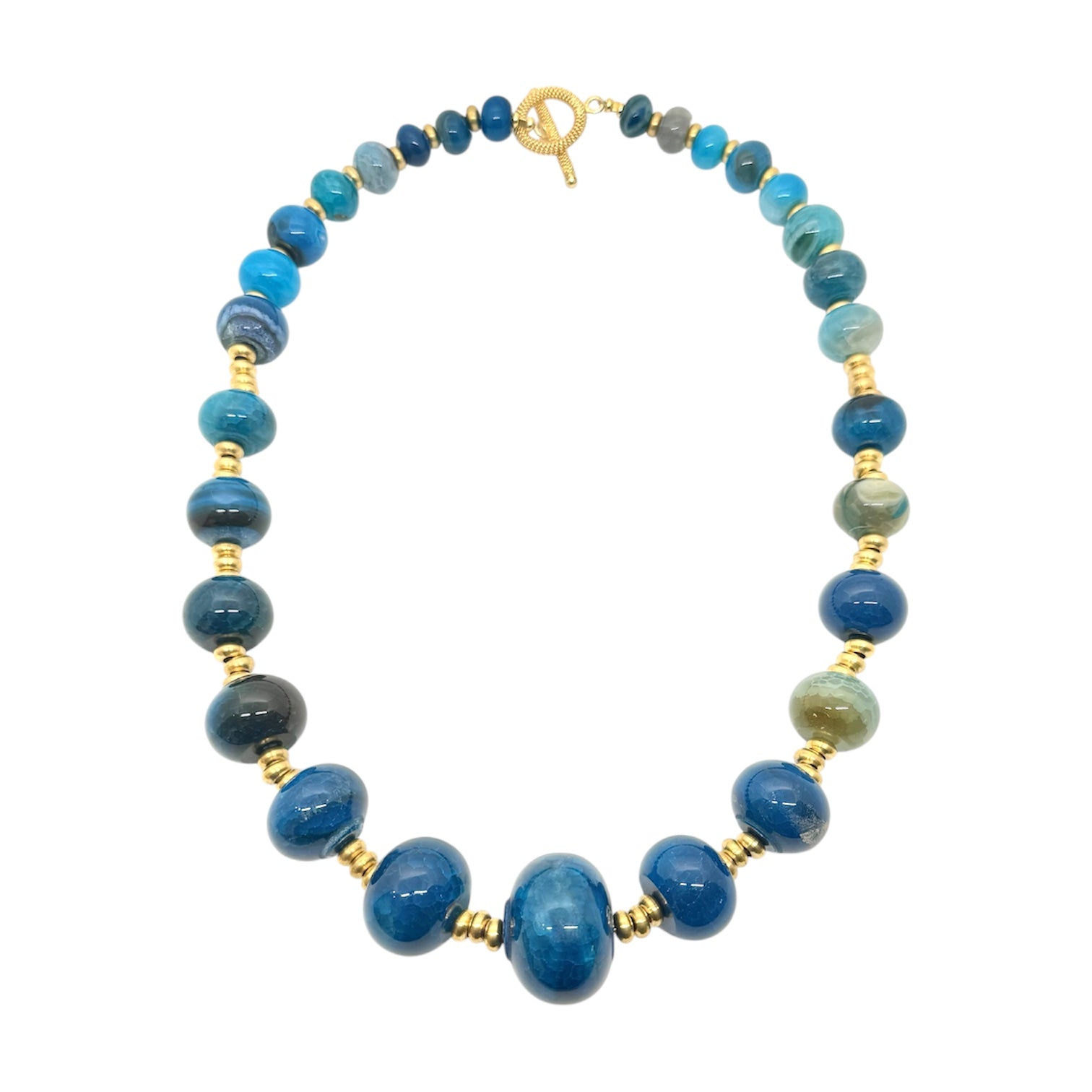 Make a statement with our Ocean Blue Necklace , Inspired by the depths of the sea . Featuring beautiful Ocean Agate stones that shimmer in rich luminous shades of deep blues reminding us of stunning ocean hues.
