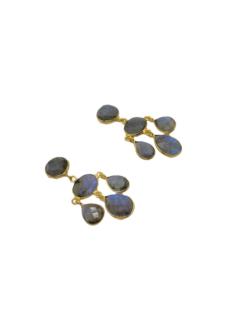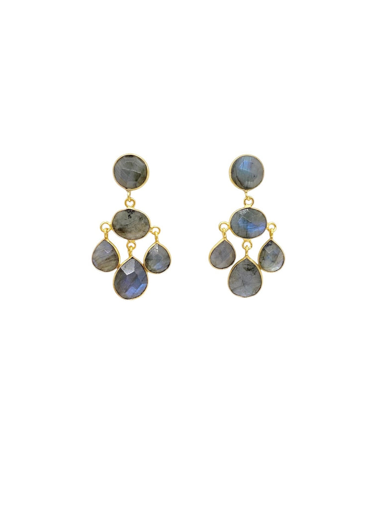 The Legare is a modern chandelier earring featuring colorful faceted Labradorite stones. Each earring captures the light in a dance of shimmering hues, transforming with every angle. Each pair is meticulously handcrafted, slight variations in gemstone color make every set truly one-of-a-kind. Finished with gold-filled post backs for a refined touch.