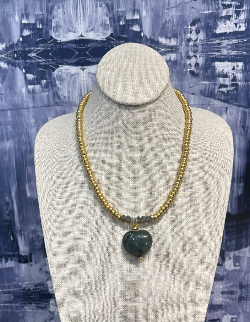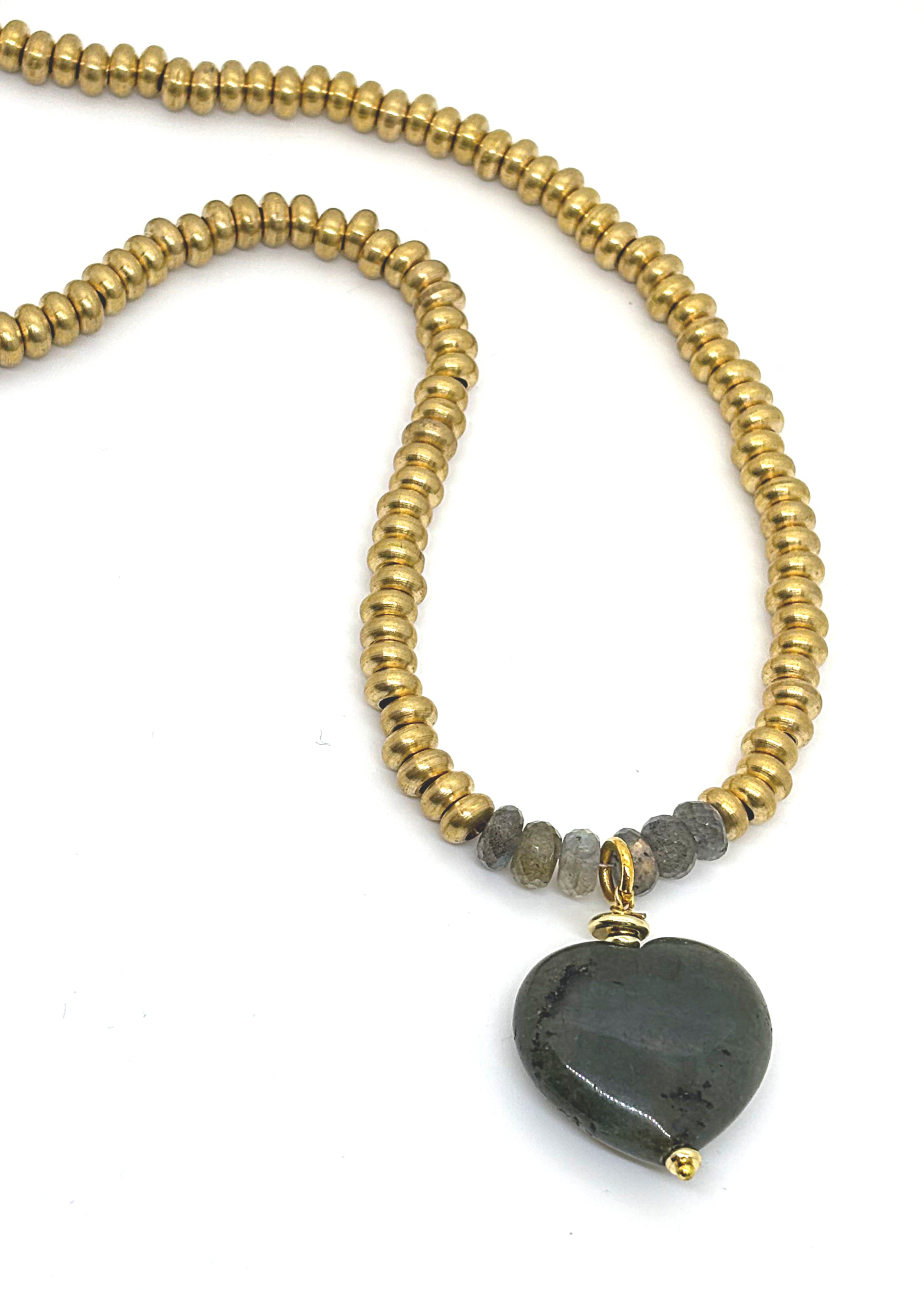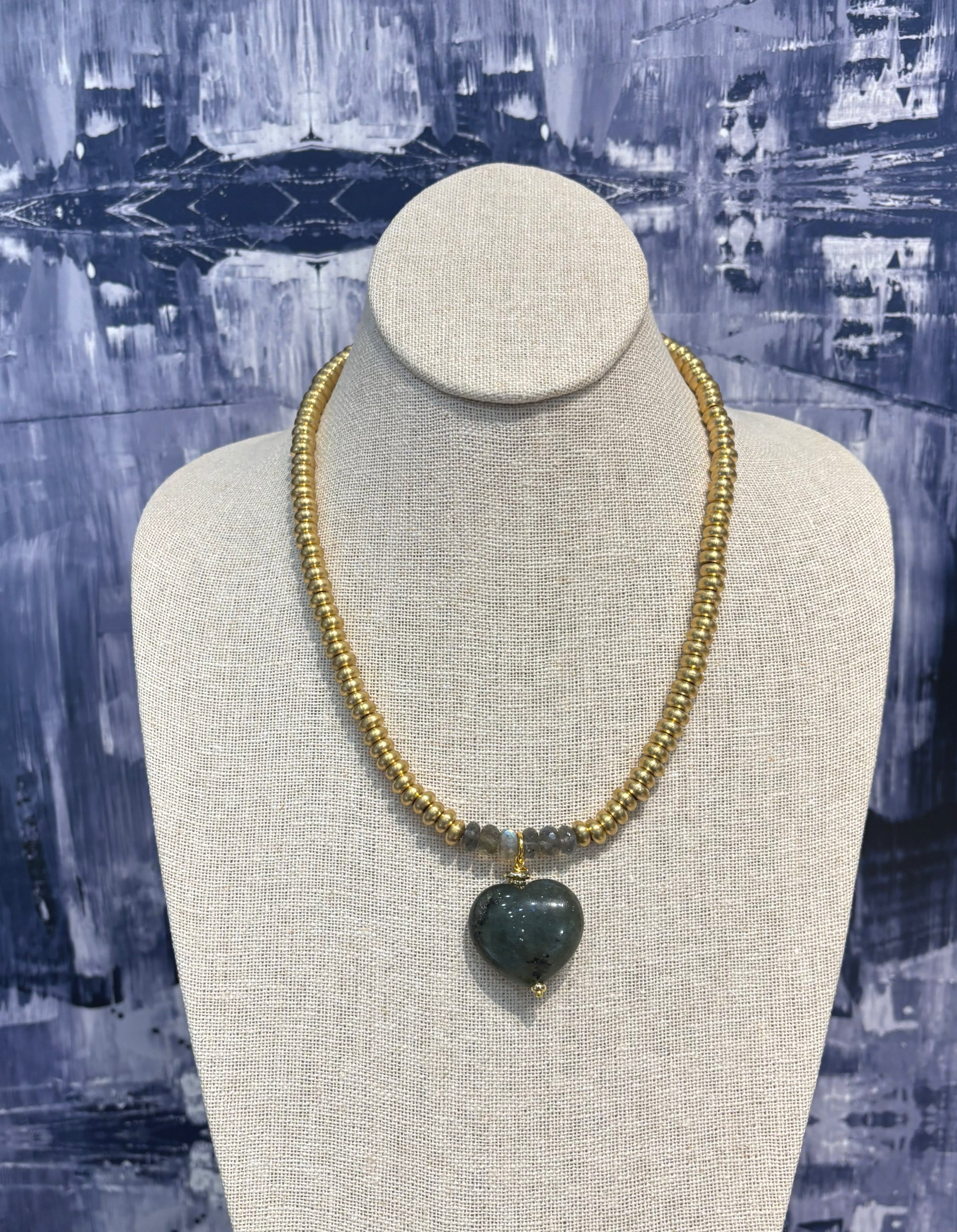 Total length: 18" Toggle claps. Labradorite pendant measures 1" x 1.5"