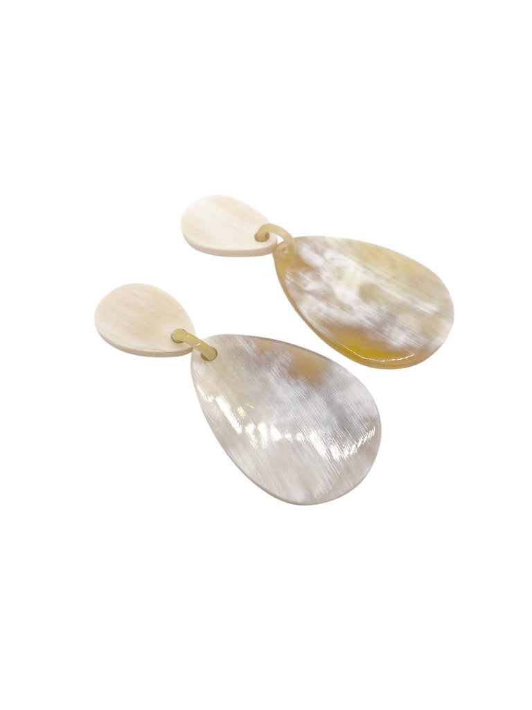 Exquisitely crafted for the modern connoisseur, these drop earrings exude a refined, effortless elegance. Meticulously handcrafted from polished horn, each pair features subtle, unique variations in tone and texture, ensuring no two are alike. Lightweight and versatile, their minimalist teardrop design seamlessly transitions from day to evening, offering a touch of sophistication for any occasion.