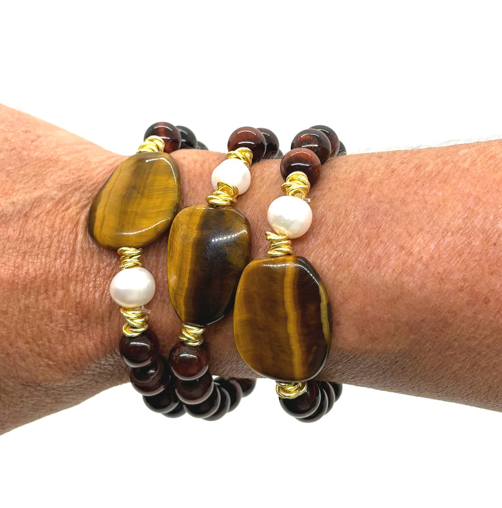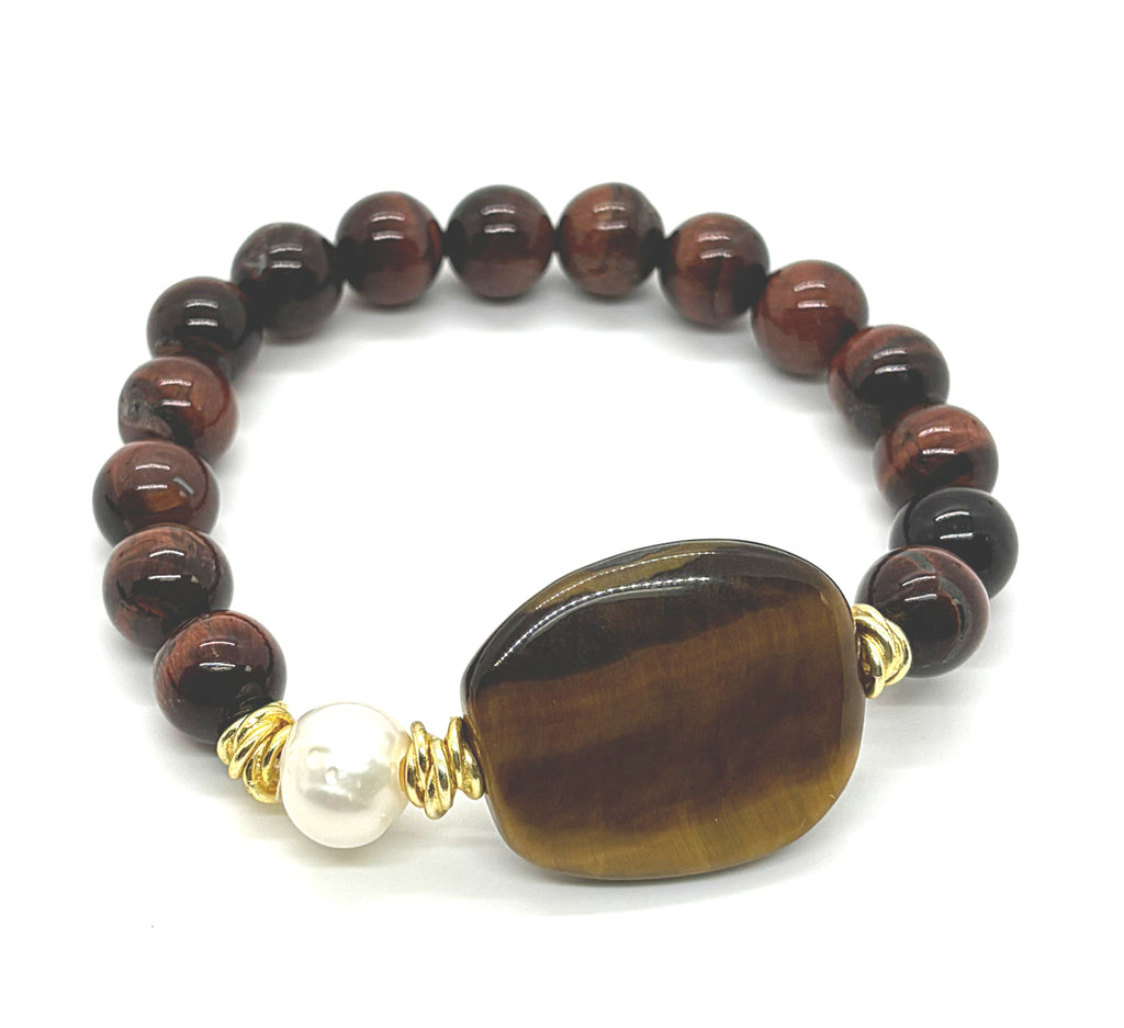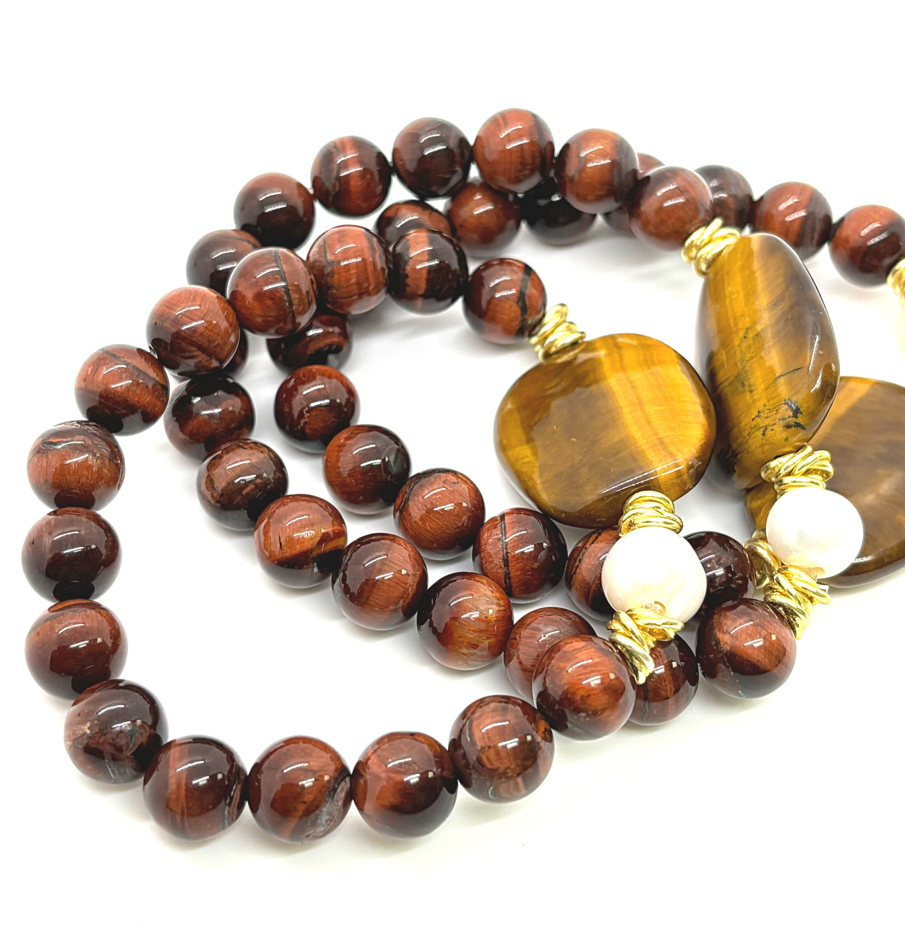 Roja brings double the tiger's eye magic to your wrist! This striking bracelet pairs fiery red tiger's eye with warm golden brown Tiger's eye, creating a mesmerizing blend of earthy elegance. Red tiger's eye is your own personal cheerleader, perfect for boosting self-confidence, igniting motivation, and awakening that unstoppable inner strength! Whether you're crushing goals or just need a confidence kick, let these powerful stones remind you that you've got this.