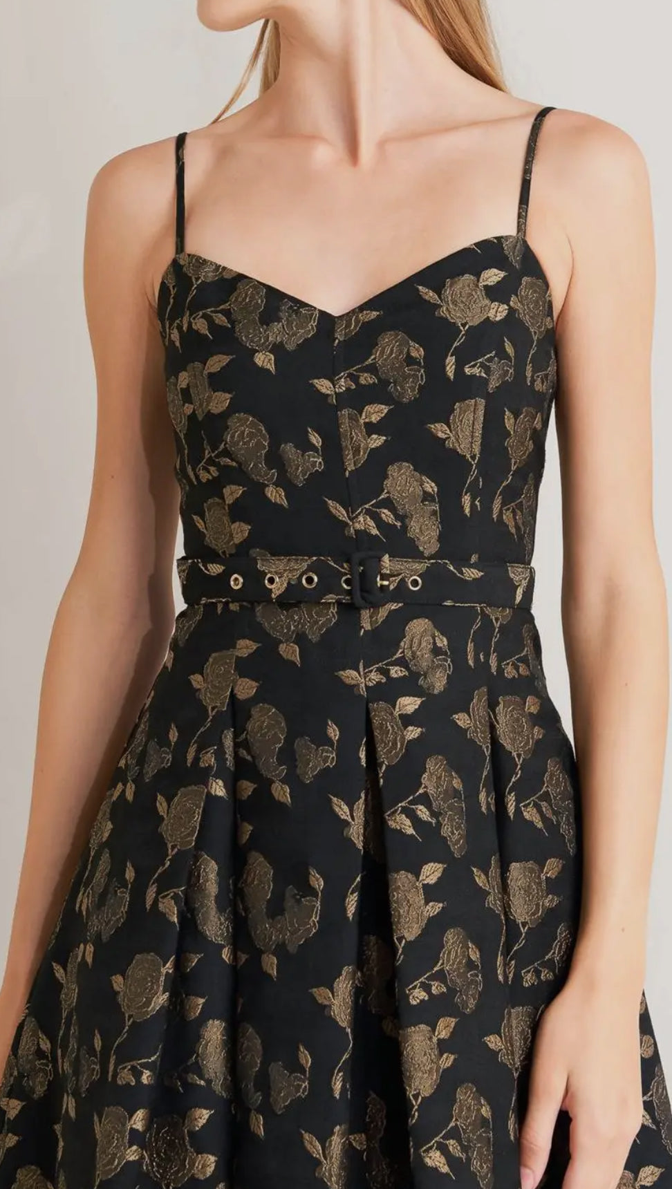Elevate your style with our Delphine Jacquard Dress. This sophisticated garment features an intricate floral design, reminiscent of English royal patterns. Ideal for date nights or formal events, this dress is a perfect addition to any wardrobe.