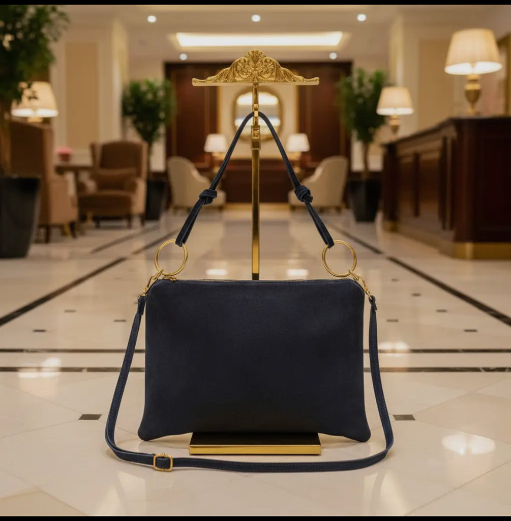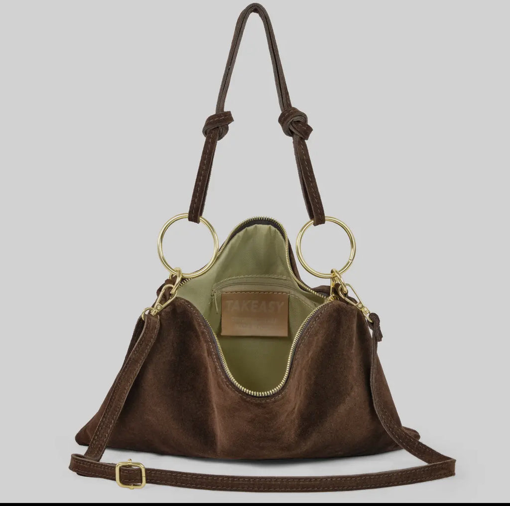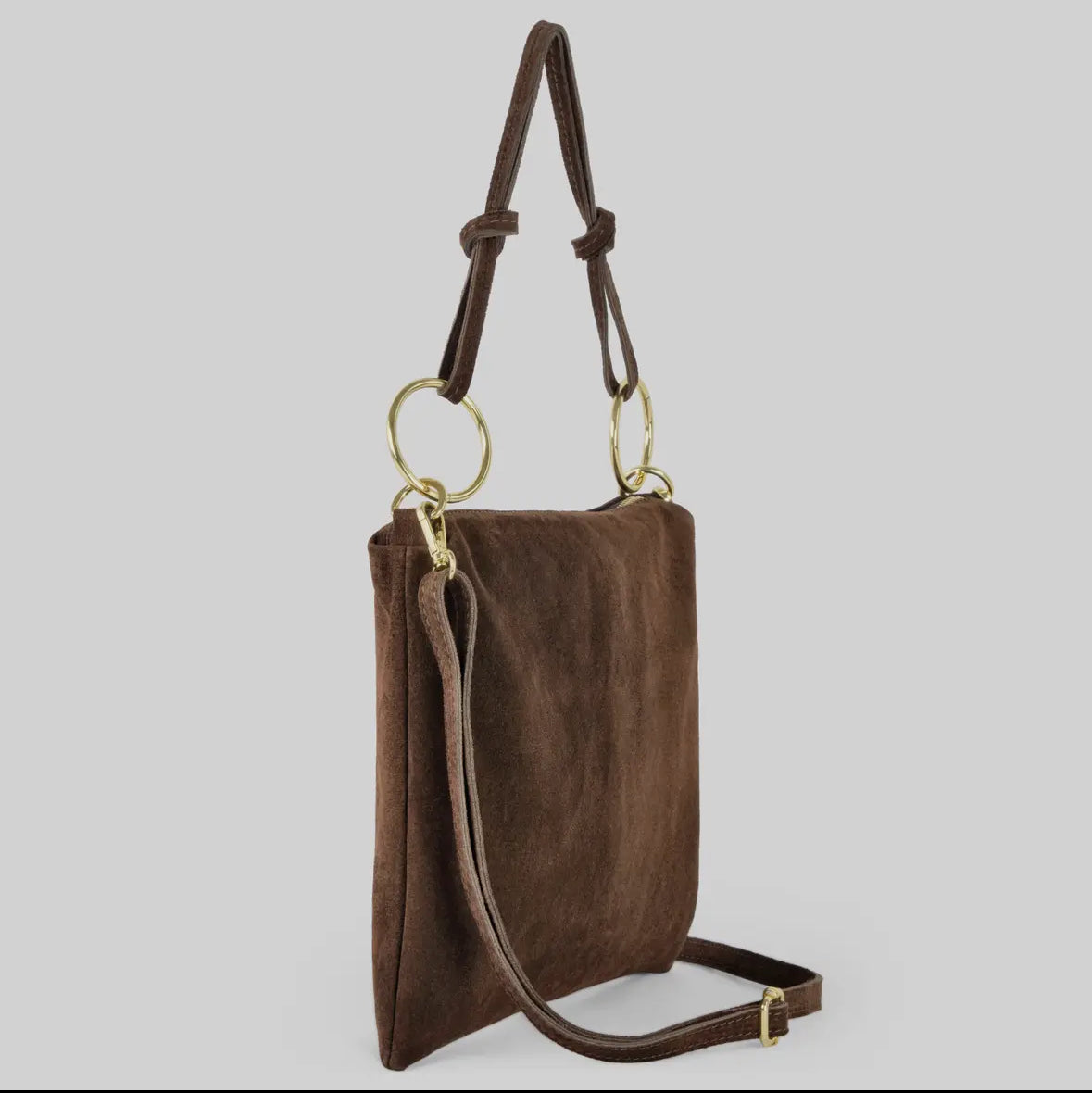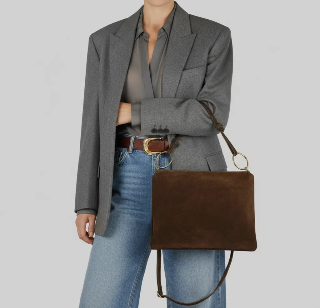 Effortlessly chic and endlessly versatile, the Harper Suede Shoulder Bag is your go-to accessory for everyday style. Crafted from soft natural suede, it features a sleek silhouette accented by gold hardware and adjustable straps for the perfect fit. The knotted handle detail adds a modern, relaxed touch—equally perfect for day-to-night wear. Carry it by the top handle for a refined look or wear it crossbody for hands-free ease.