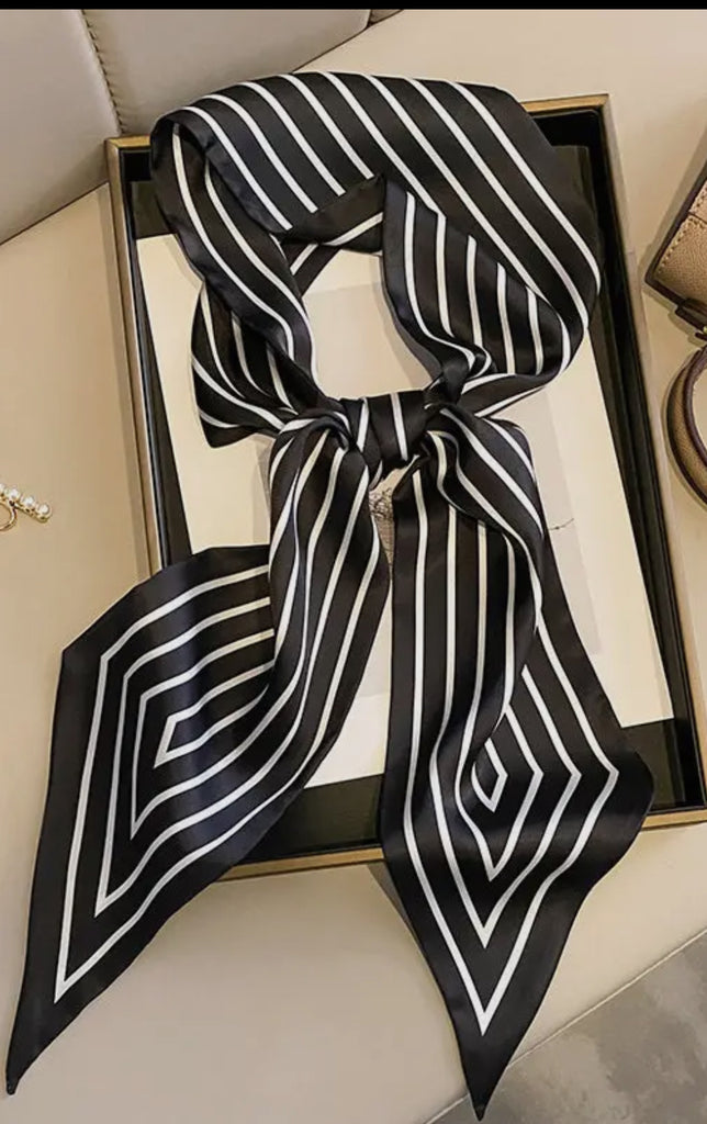 Elevate your style with this luxurious silk scarf featuring bold, eye-catching stripes. Tie it in a purse for instant flair or drape it around your neck to create effortless layered looks. Whether you're adding a pop of personality to a casual outfit or polishing up your everyday ensemble, this versatile accessory delivers sophistication with a fun twist.