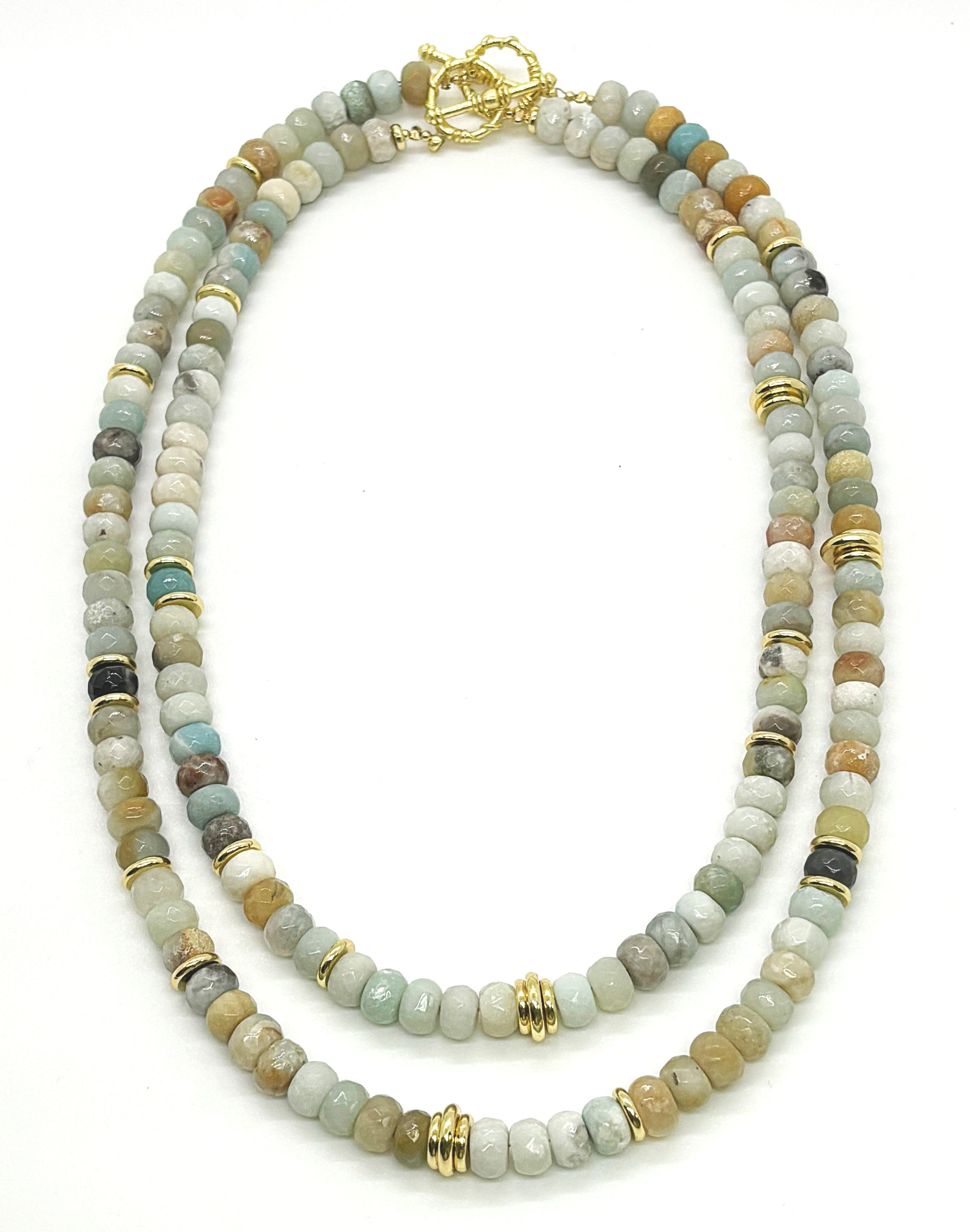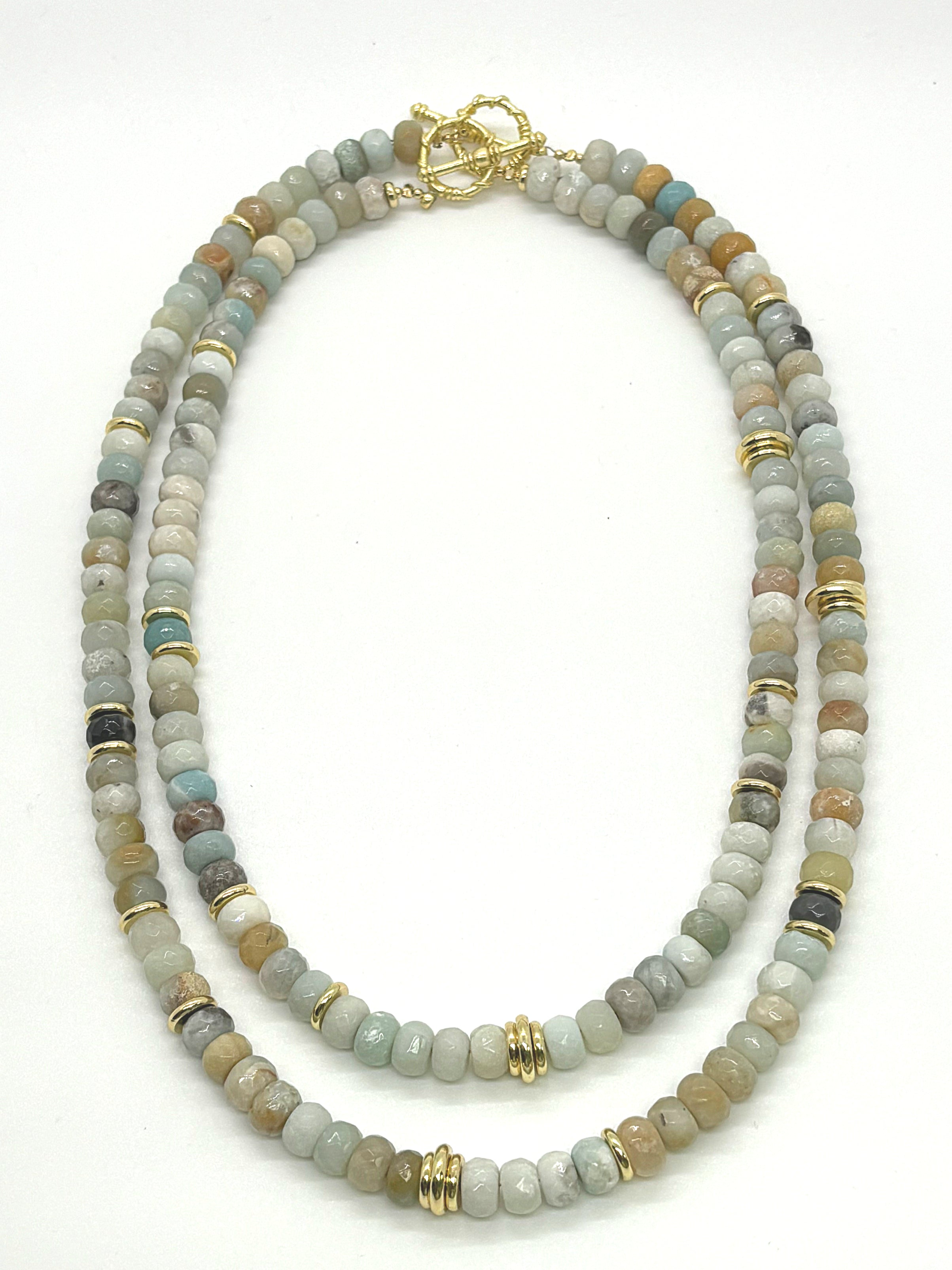 The perfect neutral layering necklace to add to your stack. Natural shades of Amazonite are hand beaded to create this essential. Listing is for one necklace strand. Toggle closure.