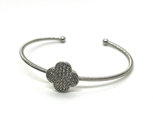 Embrace refined radiance with this gold cuff adorned with a white topaz clover, a piece that blends symbolism, elegance, and modern luxury. The sleek Sterling Silver cuff offers a polished, sculptural silhouette, while the sparkling white topaz clover centerpiece adds a touch of brilliance and good fortune. Sophisticated, timeless, and impeccably crafted—this is a piece made to be treasured.
