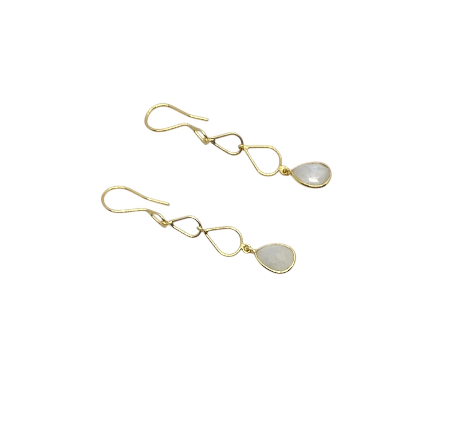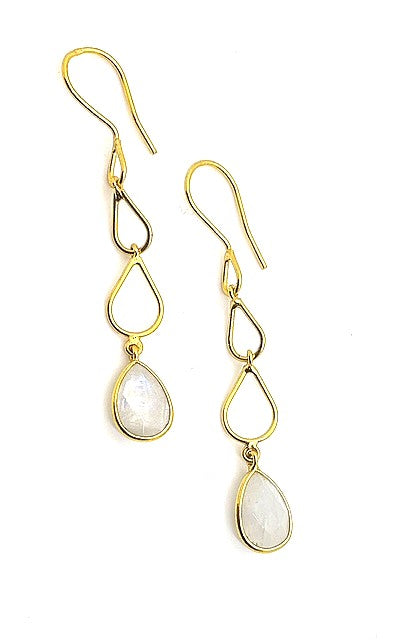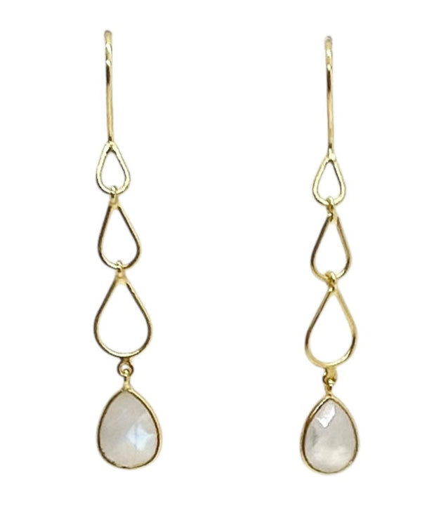 Our Ethereal earrings feature a luminous Moonstone suspended from three delicate open droplets. Lightweight graceful, these dangles are perfect for both everyday wear and special occasions.