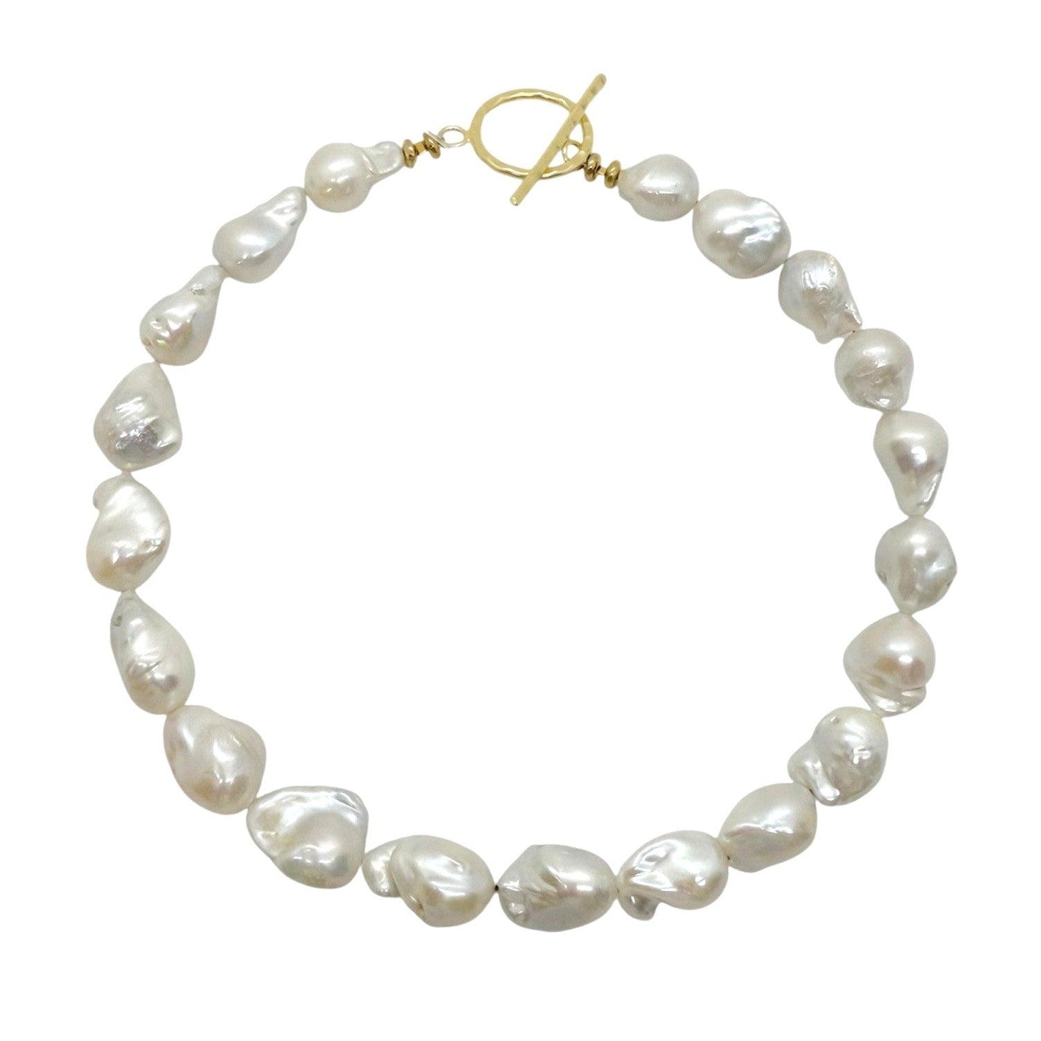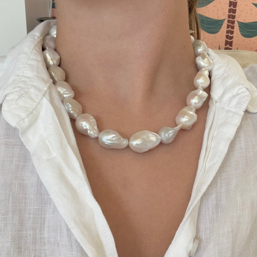 Our Baroque necklace features beautiful AAA grade Baroque pearls finished with a simple gold-filled toggle clasp. This necklace is the statement every outfit needs. Pair with a baroque pearl dangle or simple gold stud. A true show stopper!