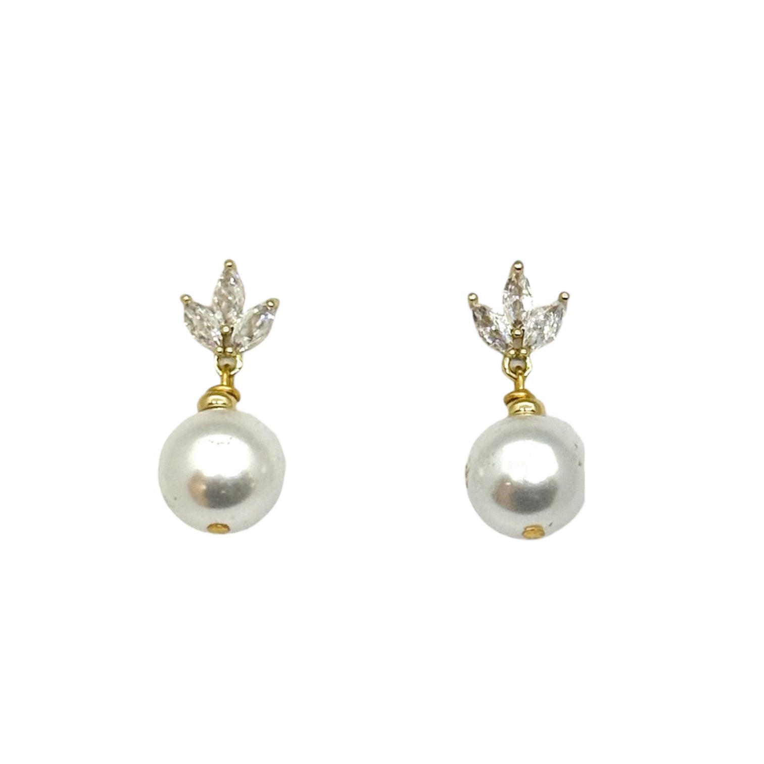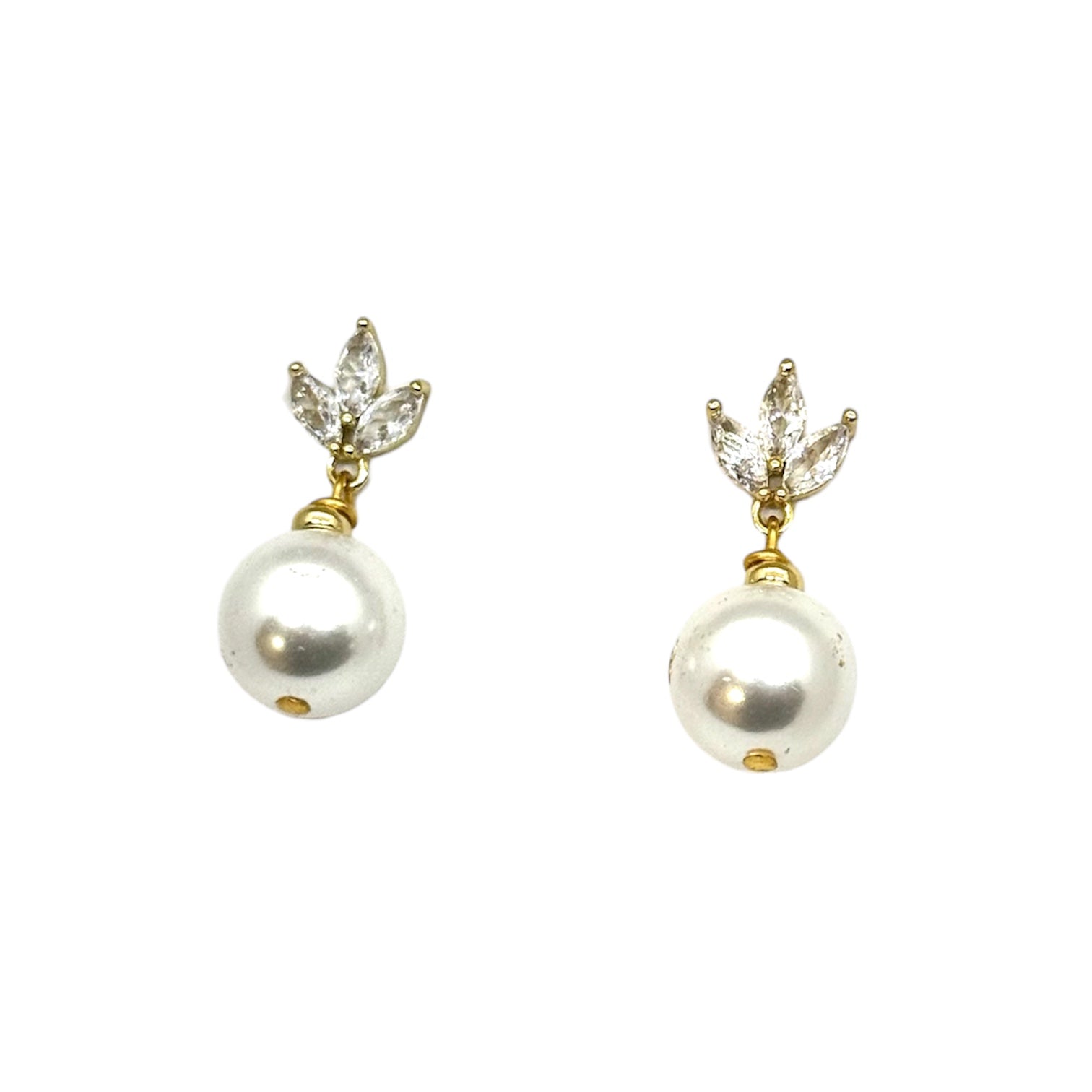 Our "Mollie" dangles are the perfect touch of sparkle. Featuring a beautiful Pearl and a trio of White Topaz gemstones. The perfect blend of classic and chic!