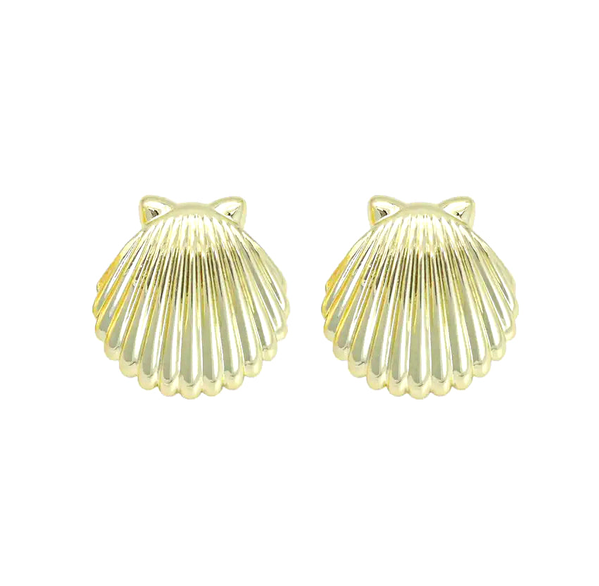 Our Shelly earrings feature a single scallop shell in a shiny gold finish. Large enough to make a statement, the perfect size for everyday wear. Show your love of the beach with this playful style