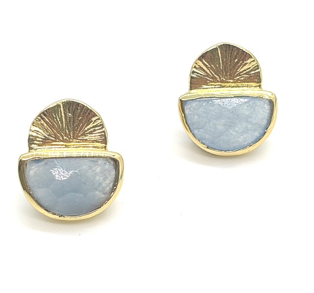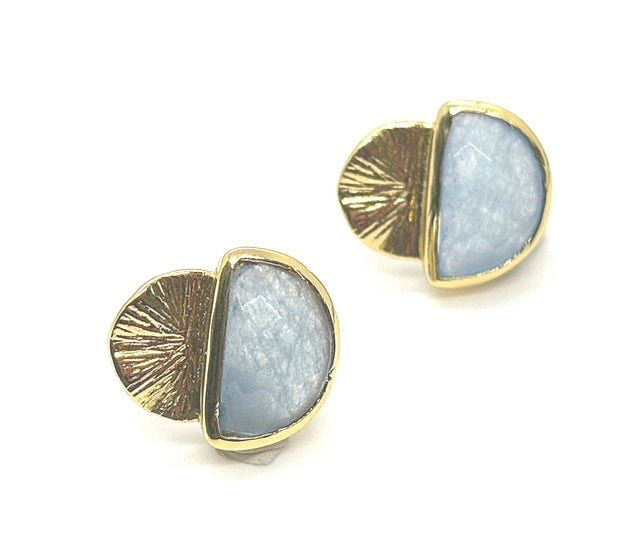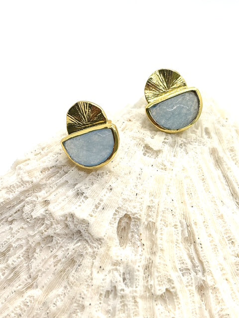 Moody, mesmerizing, and endlessly wearable—these calcedony stud earrings capture the essence of a stormy sky in the most elegant way. The soft fog blue hue pairs with everything, making them your new go-to for both casual days and dressed-up nights. Simple, versatile, and undeniably beautiful.